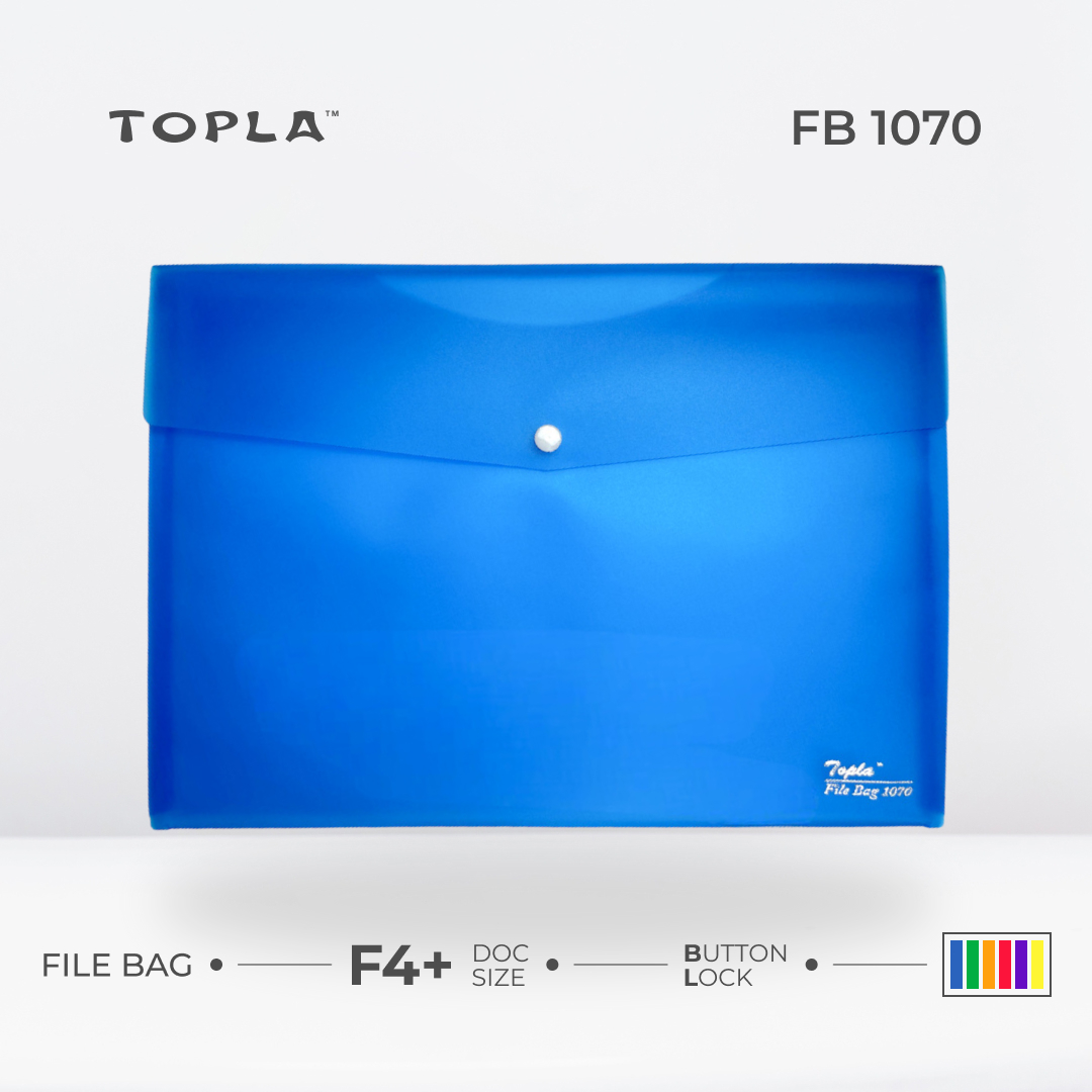 Keamanan isi di dalam File Bag 1070 tetap terjaga berkat hadirnya sistem pengunci kancing yang sangat praktis. Pengunci ini memastikan map dokumen f4 Anda tidak akan terbuka secara tidak sengaja saat sedang dibawa beraktivitas. Tersedia enam pilihan warna menarik, yaitu biru, hijau, orange, merah, ungu, serta kuning yang sangat energetik. Anda dapat memanfaatkan variasi warna ini untuk mempermudah kategorisasi dokumen berdasarkan tingkat kepentingan atau departemen tertentu. Warna-warna yang cerah ini juga memberikan kesan modern dan memudahkan Anda menemukannya di antara tumpukan barang lain.