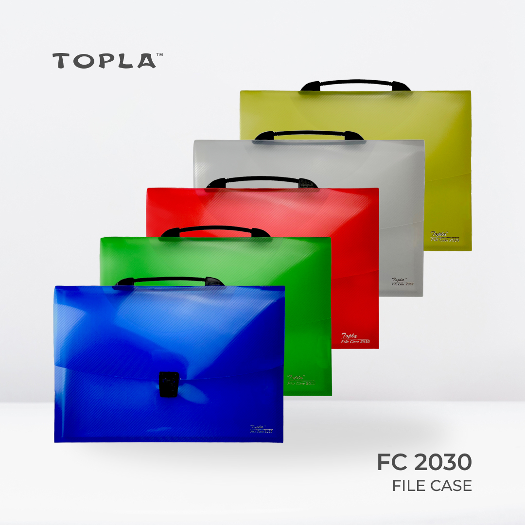 Untuk memastikan dokumen tidak tercecer, File Case 2030 dilengkapi dengan sistem pengunci clip yang sangat rapat dan presisi. Pengunci ini akan mengunci bodi folder secara menyeluruh sehingga isi di dalamnya tetap aman selama dalam perjalanan. Tersedia dalam lima pilihan warna profesional: biru, hijau, merah, putih, dan kuning. Anda dapat menggunakan variasi warna ini sebagai kode pengarsipan untuk membedakan kategori dokumen dengan mudah. Tampilan yang bersih dan modern pada map dokumen f4 ini tentu akan menambah kesan profesional pada perlengkapan kantor Anda.